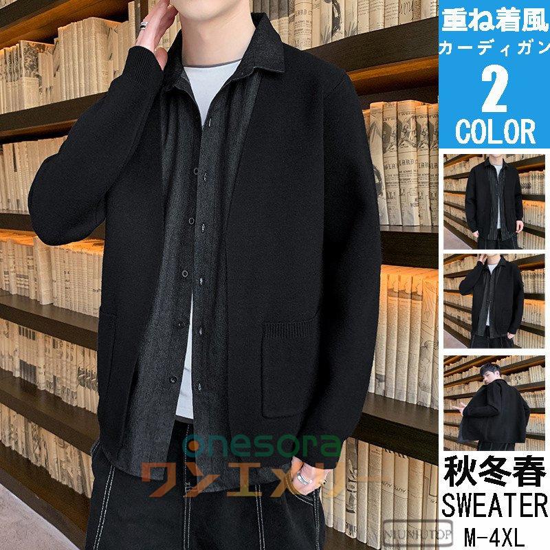カーディガンメンズ秋 冬 春 ニットカーディガン アウター シャツ襟付き 前開き 重ね着風 トップス カジュアル ワンエメリー 通販 Yahoo ショッピング